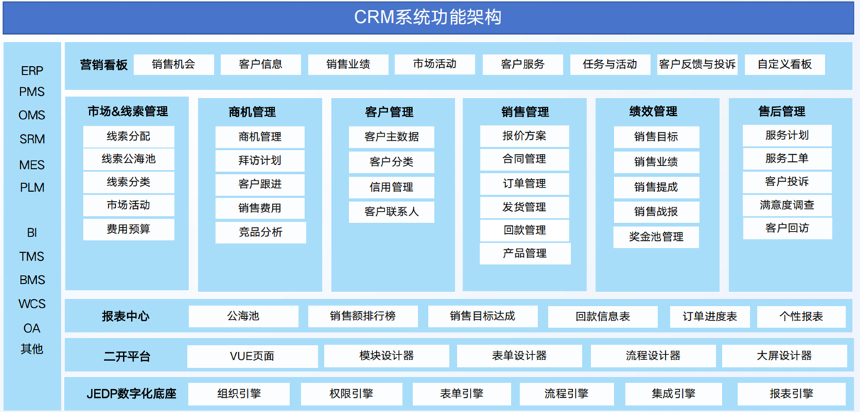 以客户为中心,打通线索至收款的端到端的销售流程,讲这些流程渗透到业务的每个环节,支撑销售团队的每个动作